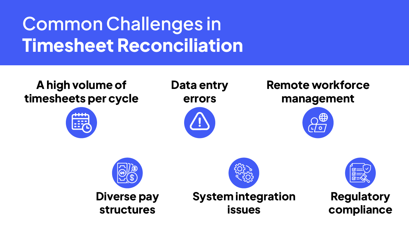 This technology helps extract data from physical payroll documents and convert them into digital formats for precise reconciliation. It guarantees that payroll records remain error-free, hence minimizing miscalculations in staffing payroll.Common Challenges in Timesheet Reconciliation